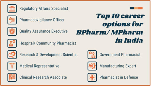 | 6] Medical Representative/Sales | 7] Clinical Research Associate (CRA) | 8] Govt. Pharmacist | 9] Manufacturing Expert/Production | 10] Defense/Army Pharmacist | |