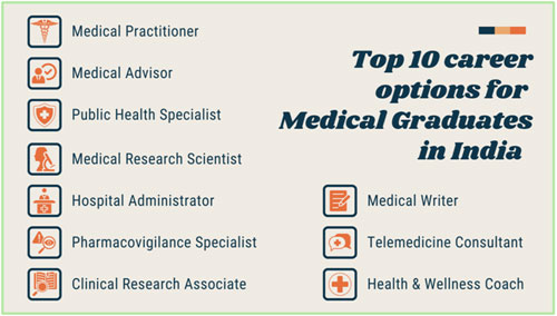 | 6] Hospital Administrator/ Healthcare Manager | 7]Pharmaco-vigilance Specialist | 8] Medical Writer/Regulatory Affairs Specialist | 9] Telemedicine Consultant | 10] Health and Wellness Coach | |