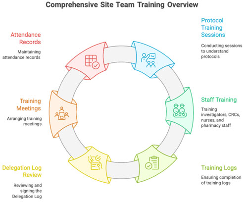 - PI reviews protocol → CRC arranges training