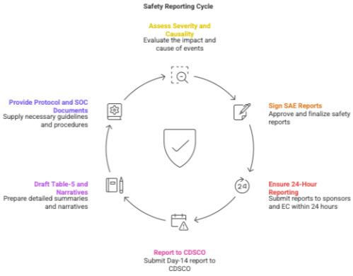 - PI reviews AE/SAE → CRC drafts forms